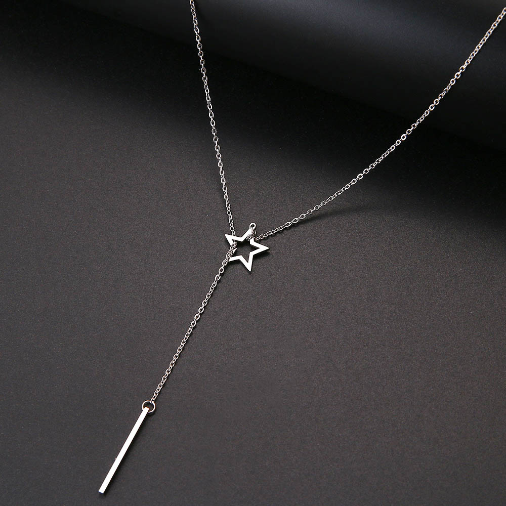 CACANA Long Pendant Star Stick Necklaces Pendants For Women Simple Design Necklace Stylish Stainless Steel Jewelry Party Gift Silver-60cm – Sumsfashion