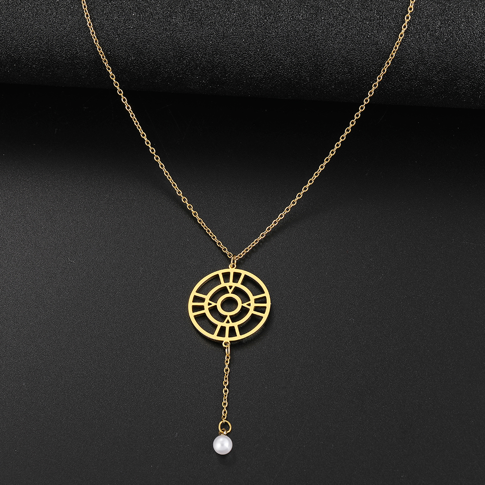 Stainless Steel Necklaces Round Roman Compass Tassel Pearl Pendants Chains Charms Choker Necklace For Women Jewelry Gift Gold-45cm – Sumsfashion
